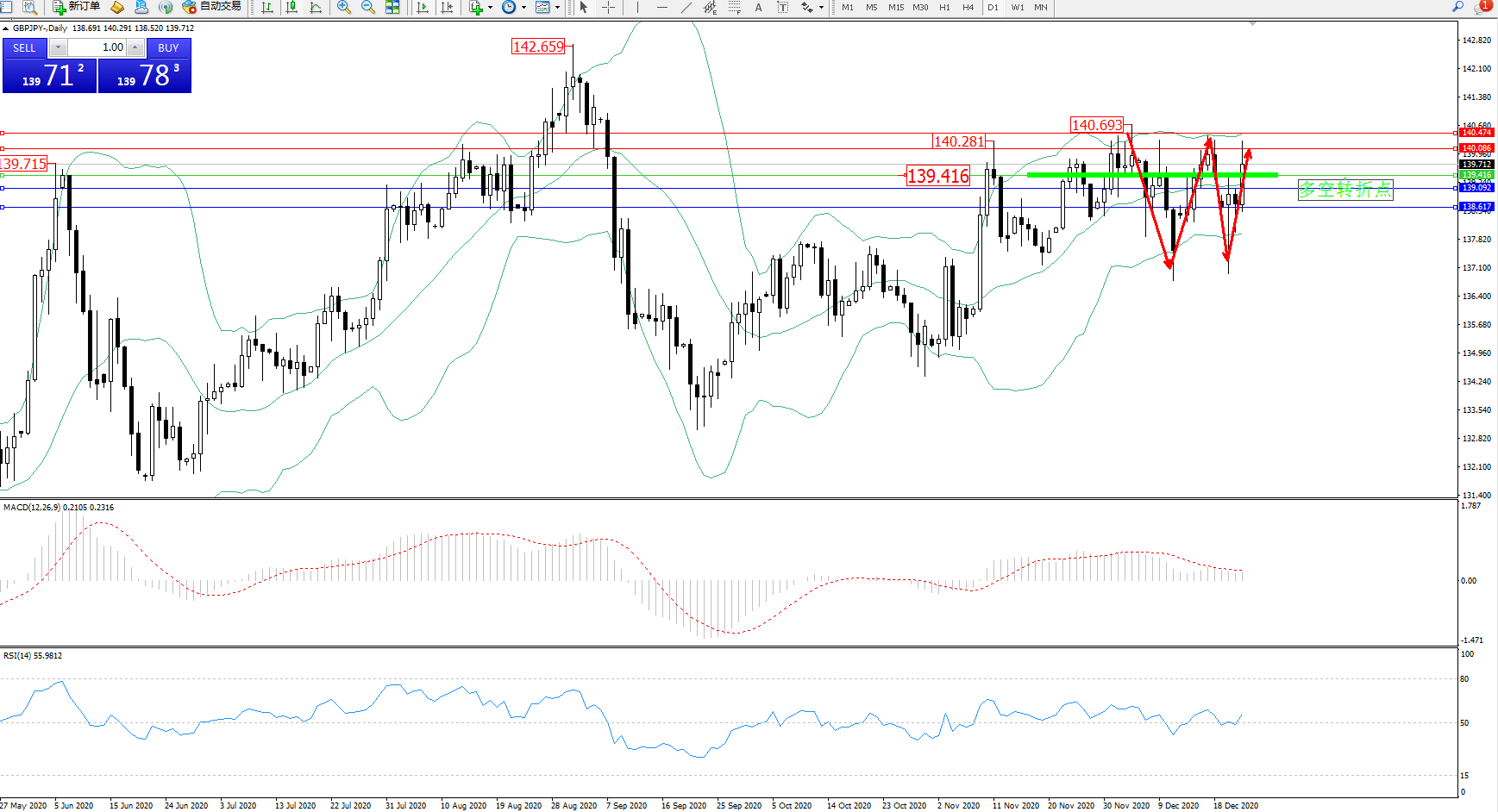 英镑兑美元强势回升至139.668附近震荡,英国脱欧贸易协议框架已经达成,正研究敲定协议措辞;经过近10个月时常引发担忧的谈判后,协议仍需得到英国首相约翰逊和欧盟同意,意味着仍有可能达不成协议,英国与欧洲大陆重要的贸易和运输通道即将恢复,此前法国同意结束导致英国最繁忙港口陷入瘫痪的临时关闭措施。法国切断了来自英国多佛的货运交通,因为担忧英国变异新冠病毒快速传播。恶化的疫情已经促使英国政府封锁了伦敦及周边地区。包括许多欧盟成员国在内的逾40个国家限制了英国航班入境。距离英国脱欧过渡期于12月31日结束只有不到8天,英国与欧盟正在加紧脱欧贸易协议谈判。这场混乱也预示了如果英国未能达成贸易协议普及接种的疫苗能都起到防疫作用再次表现出了审慎的态度。