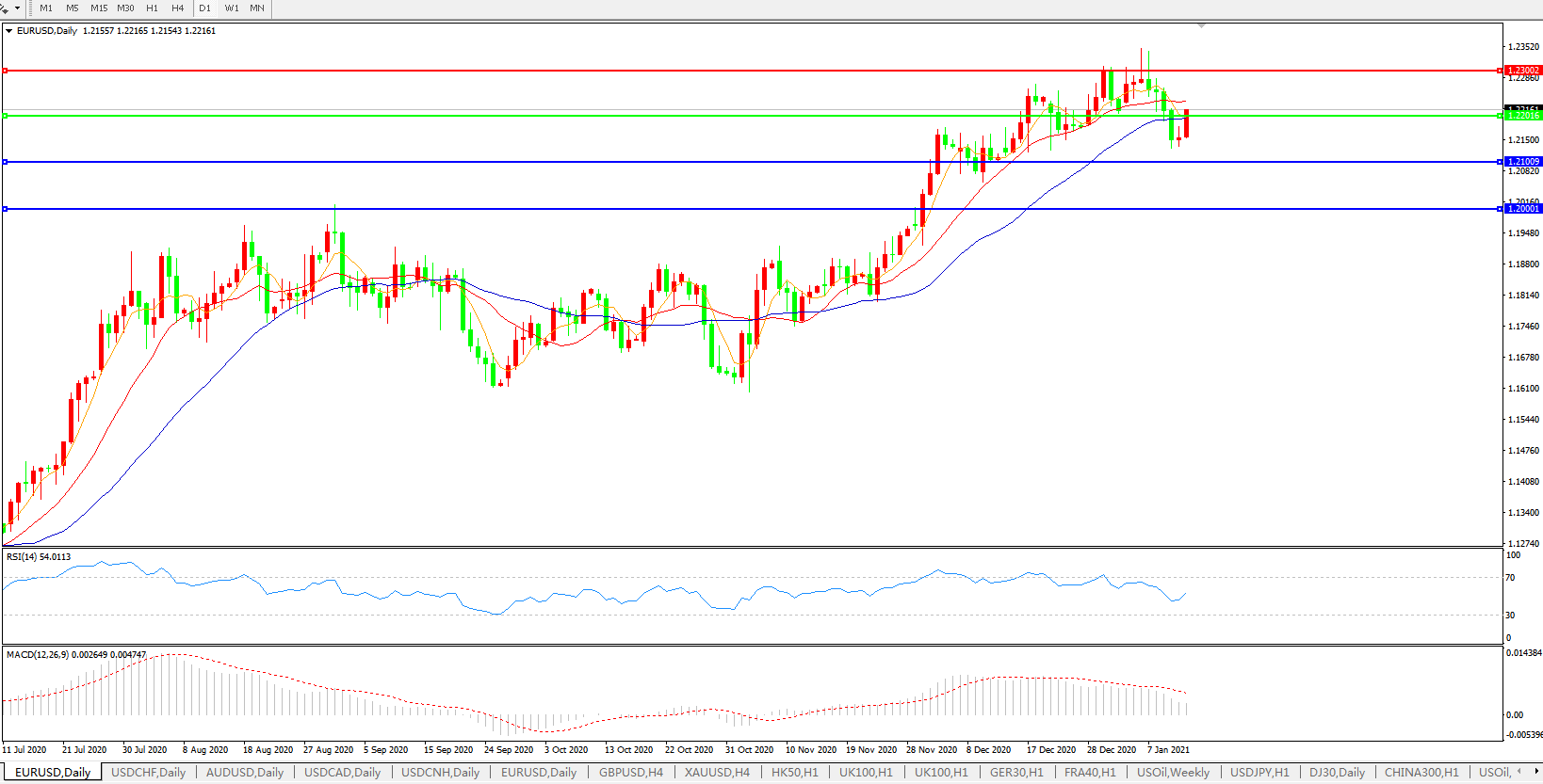 欧元兑美元在周二日内陷入盘整走势,尽管美元指数日内暂时重返疲软,但是欧元兑美元却反弹乏力,因投资者对于欧洲疫情的走向,以及欧洲央行的政策前景仍持有谨慎预期,这使得欧元兑美元在此前连续回落之后的反弹攻势在30日均线水平受阻,后市仍不排除短线进一步探底的可能性;日内德国总理默克尔表示,当前的防疫社交管控措施仍可能还要延续十周之久,这进一步挫伤了欧元反弹动能,而这也使得投资者押注在此后的欧洲央行下周政策会议上,宽松措施仍将继续延续下去,距开始收紧银根的日子仍是遥遥无期,这也和美联储开始透露未来缩减QE蓝图的状况构成反差,令欧元短线头部形态面临进一步被确认的压力; 欧元兑美元关键支撑位在1.2130,即本周一和之前12月21日的低位水平处,跌破该点位将进一步确认行情下行趋势,目标下看至1.2059;而反过来,日内高点1.2179处的30日均线切入位如果被收复,那么欧元上行趋势还将一息尚存,否则,后市汇价走势就将面临新一轮的变局。