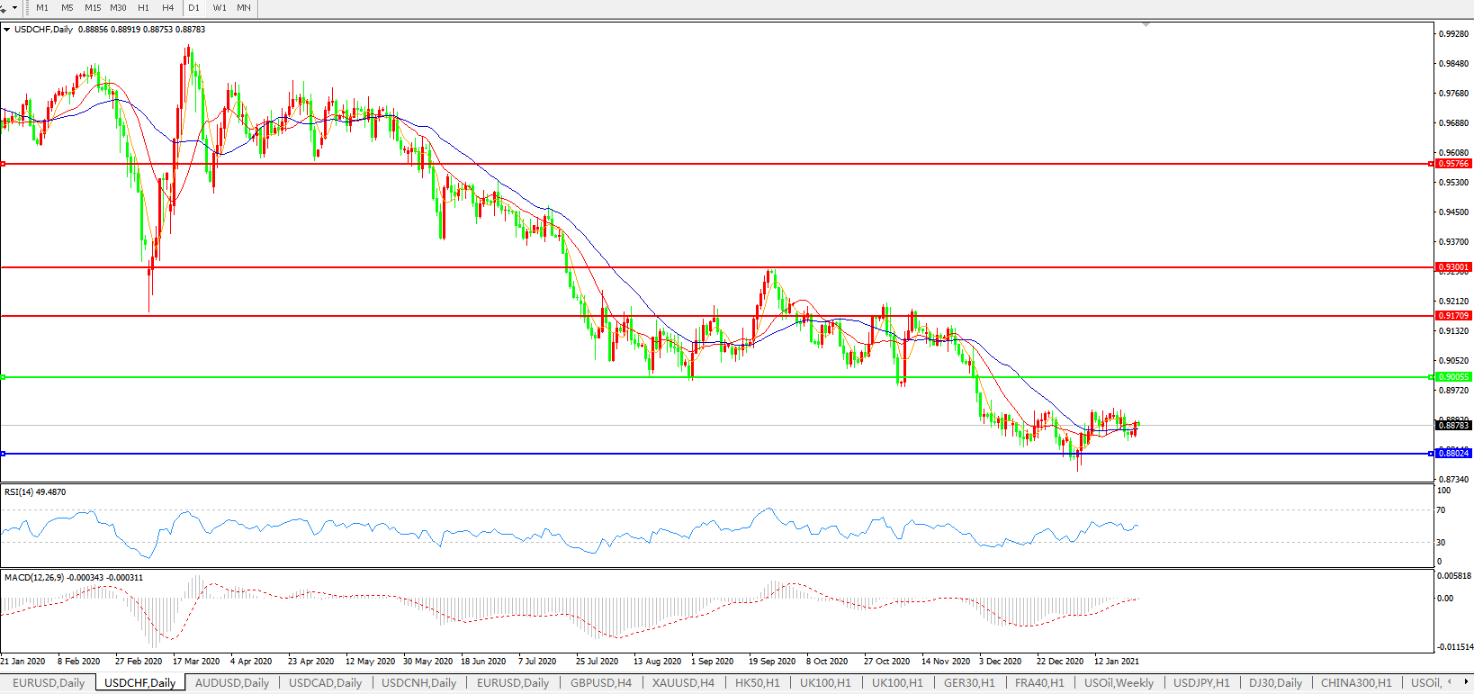 美元兑瑞郎USDCHF 日线图: