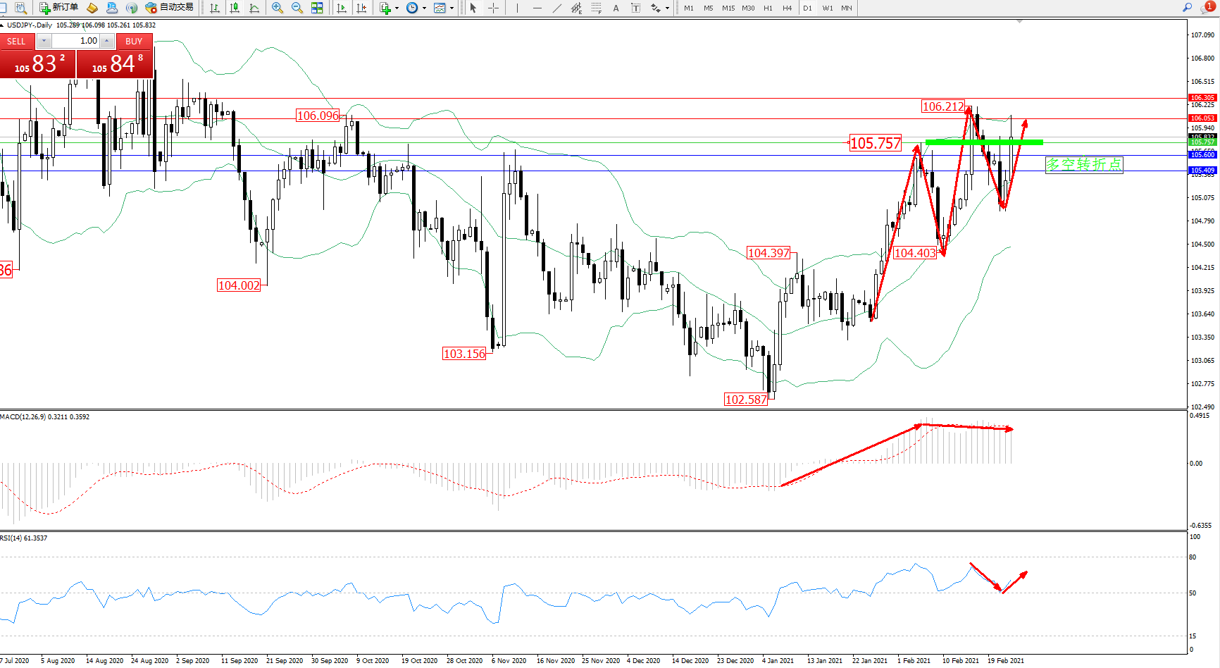 多空转折点:105.757