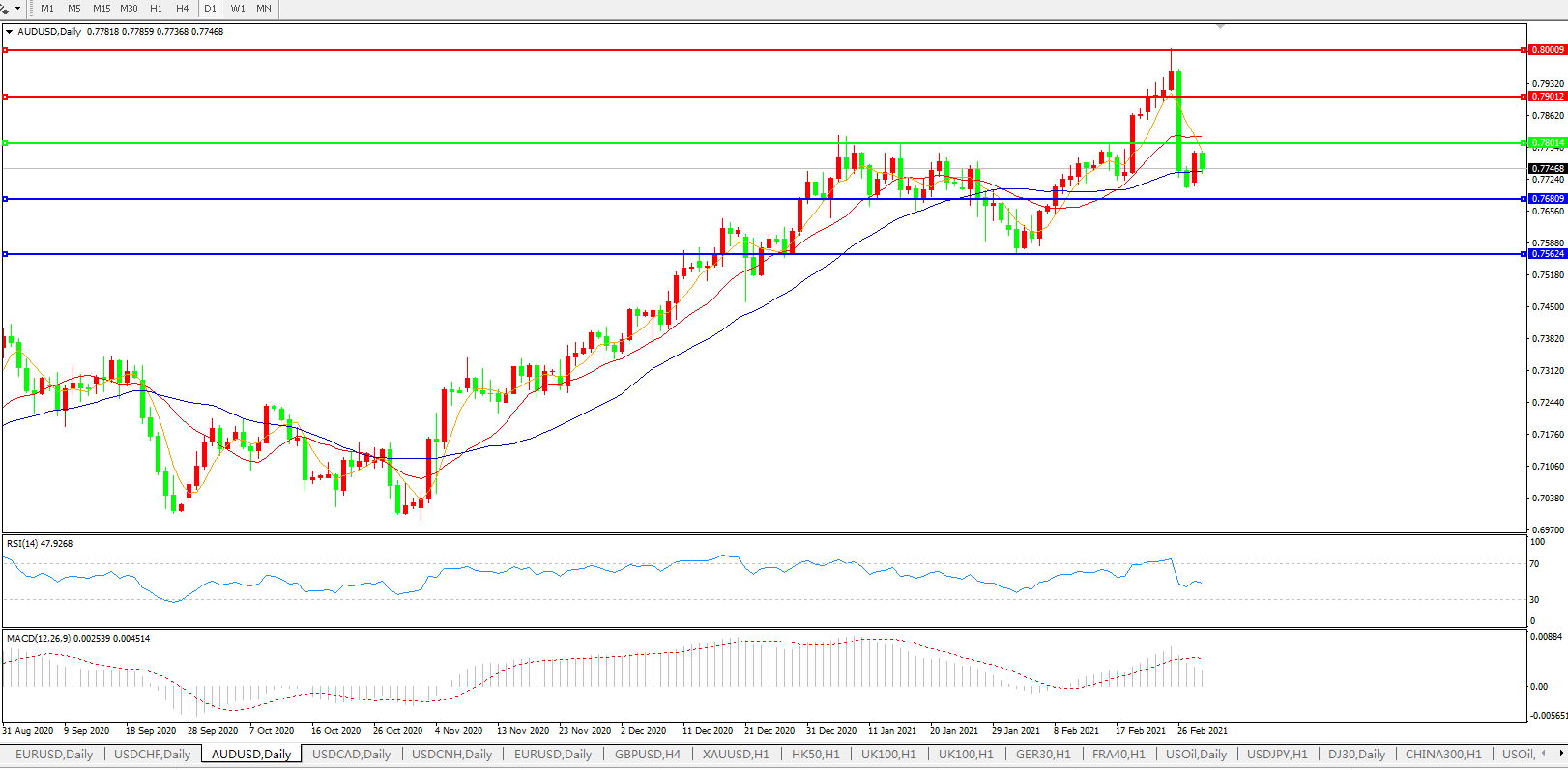 交易策略:0.7800下方看跌,目标0.7680、0.7560