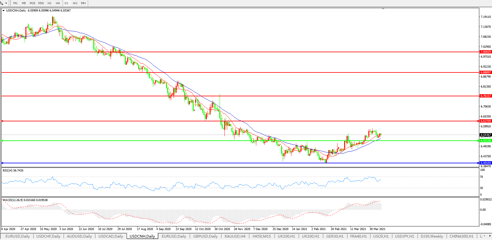 交易策略: 在6.5200之上,看涨,目标价位为6.6300,然后为6.7615。