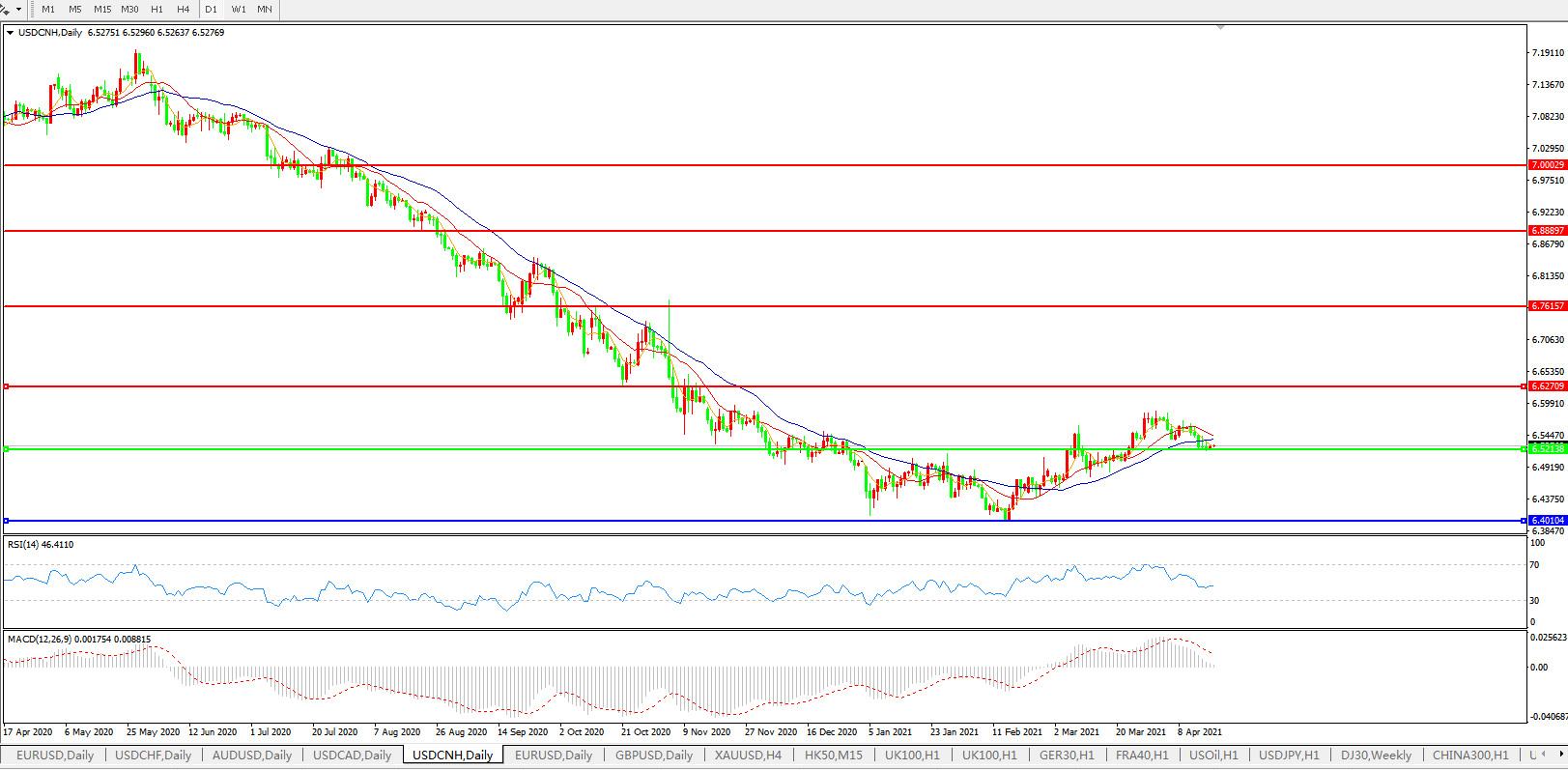 美元兑人民币USDCNH    日线图: