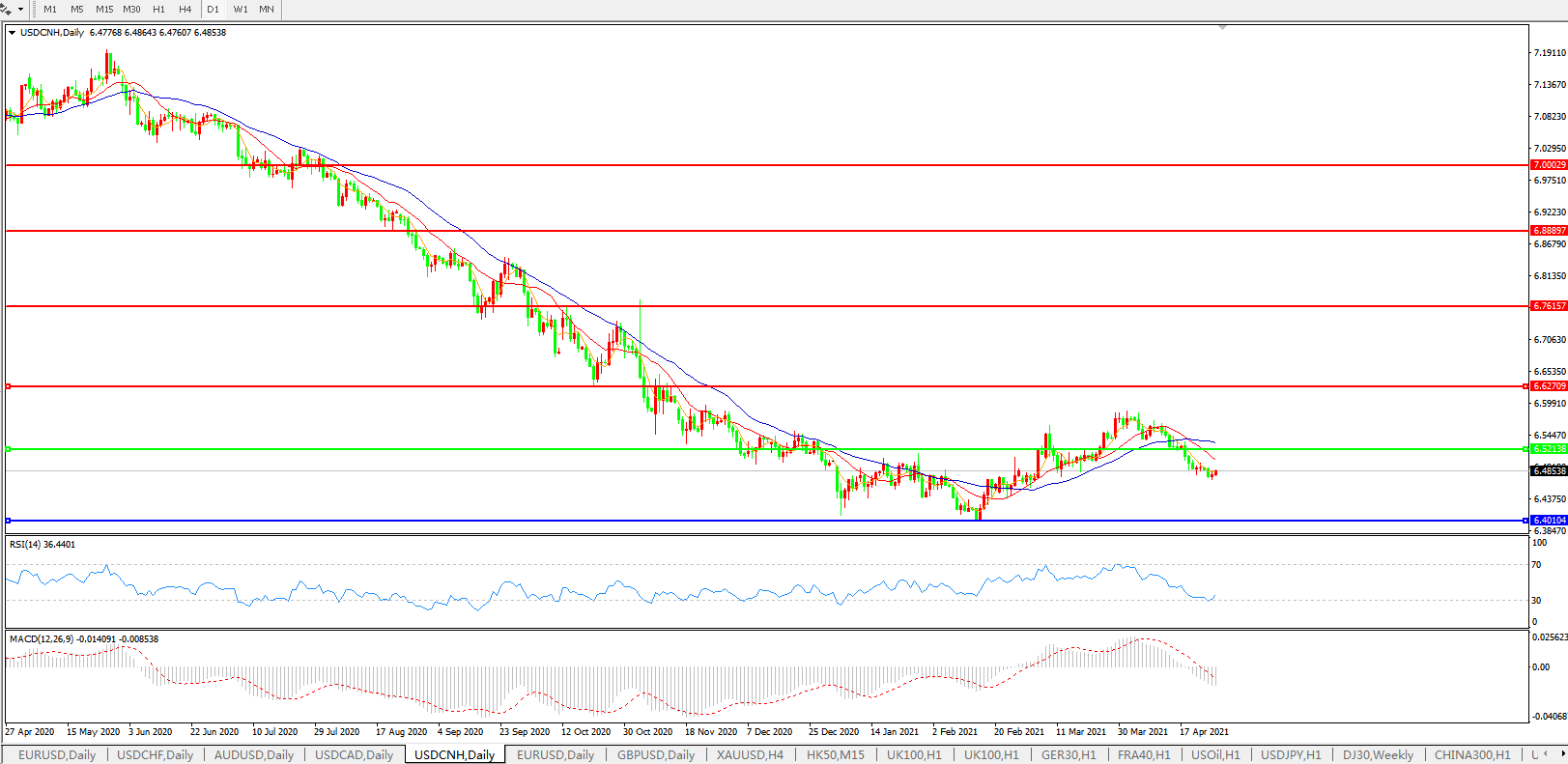 备选策略: 在6.5200之上,看涨,目标价位为6.6270,然后为6.7615。