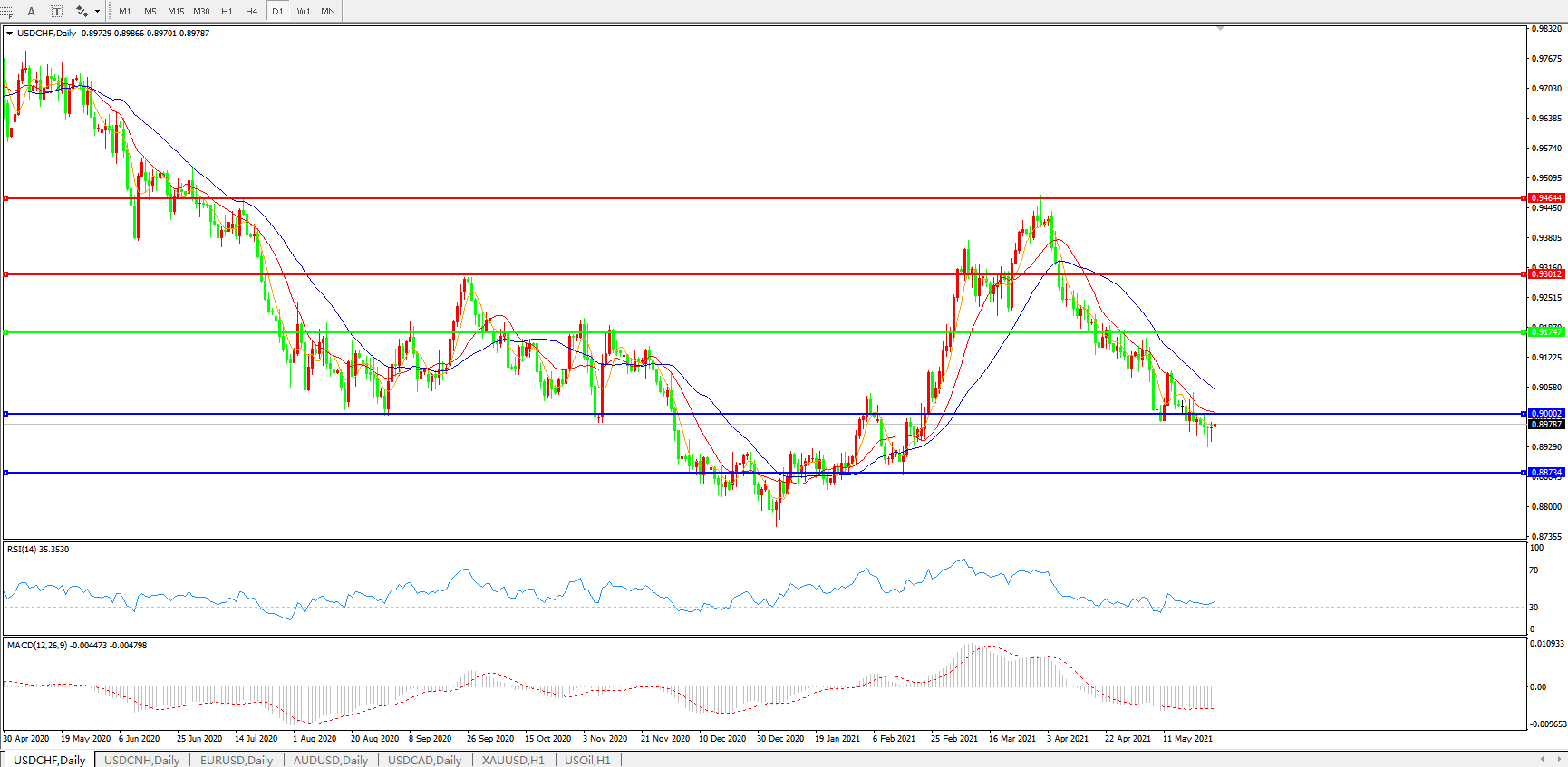技术面简析:日线图均线发散下行,汇价低位整理徘徊,MACD运行于0轴下但量能0轴开始缩量,RSI低位有上行迹象,预计短期汇价大概率将在反弹修正后进一步下行。