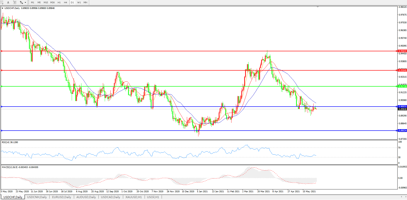 美元兑瑞郎USDCHF 日线图: