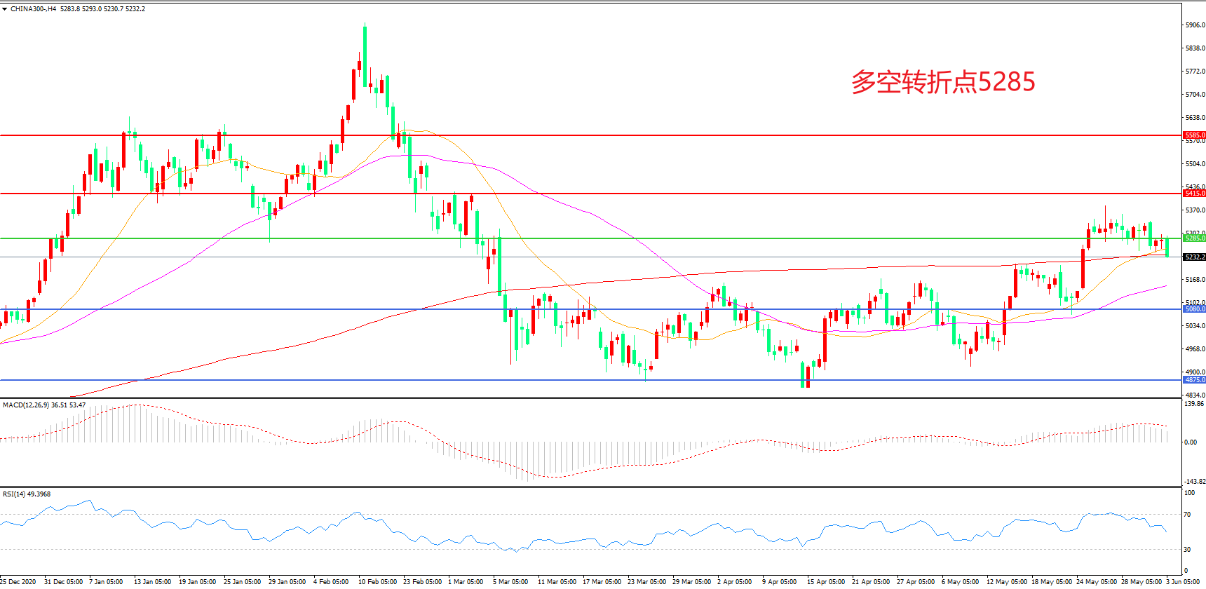 多空转折点:5285.00