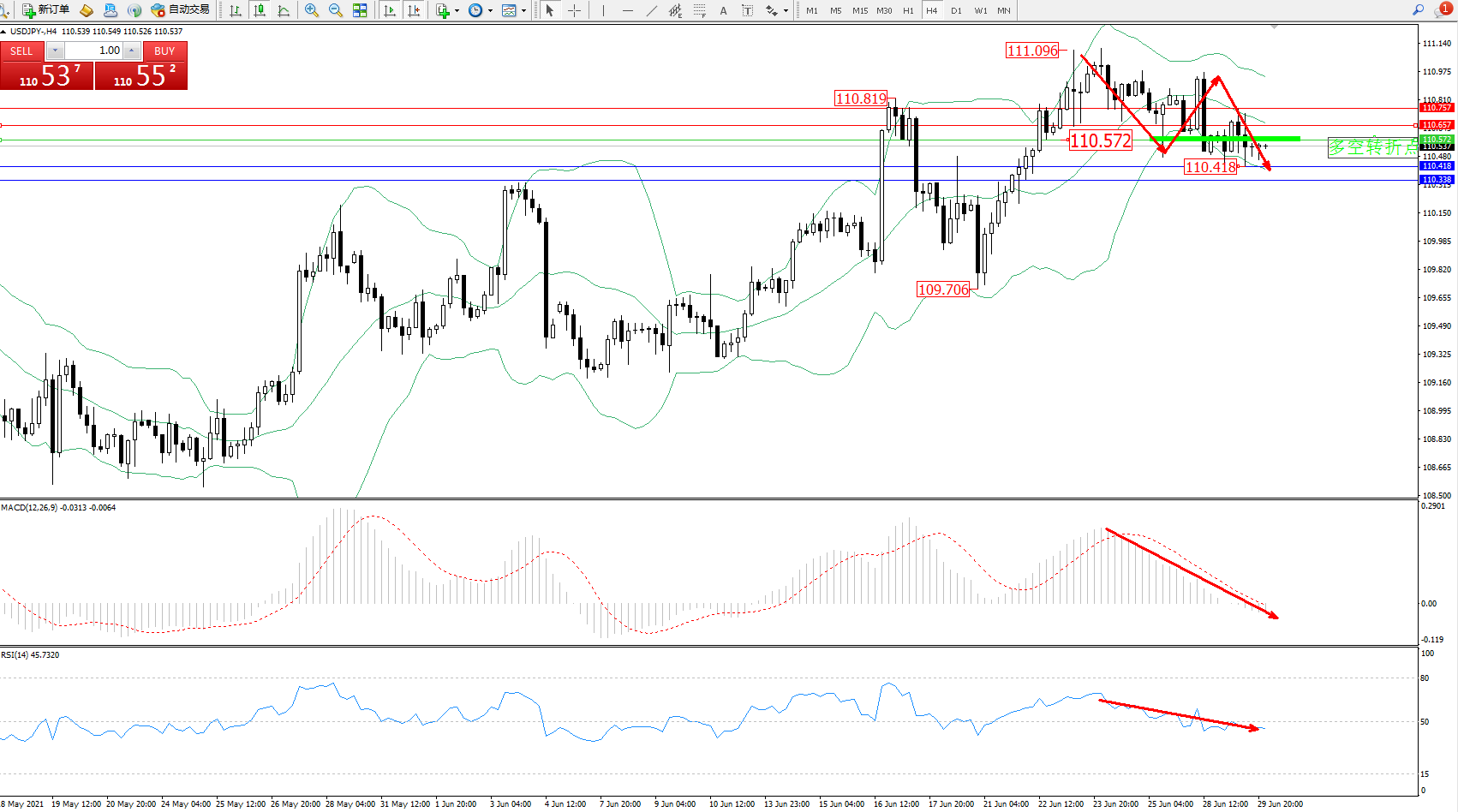 交易策略:110.572下方看跌,目标110.418、110.338