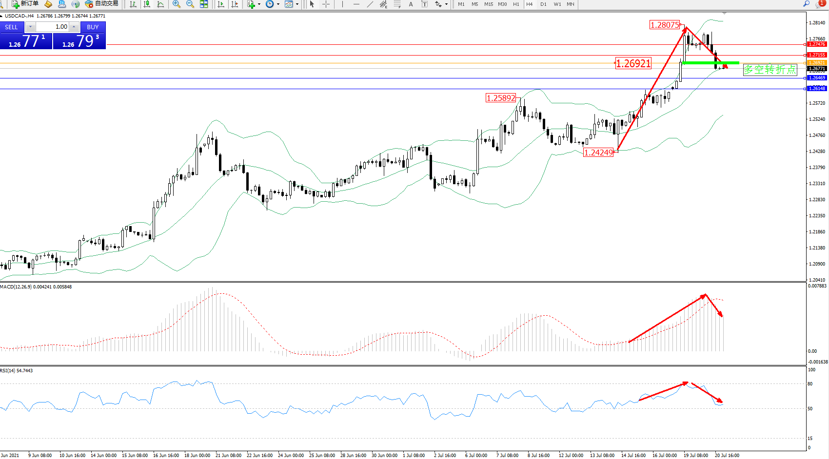 美元加元USDCAD——4小时K线图显示: