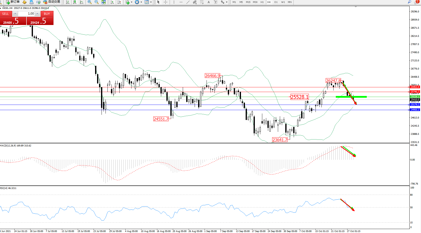 恒指HK50 ——4小时K线图显示: