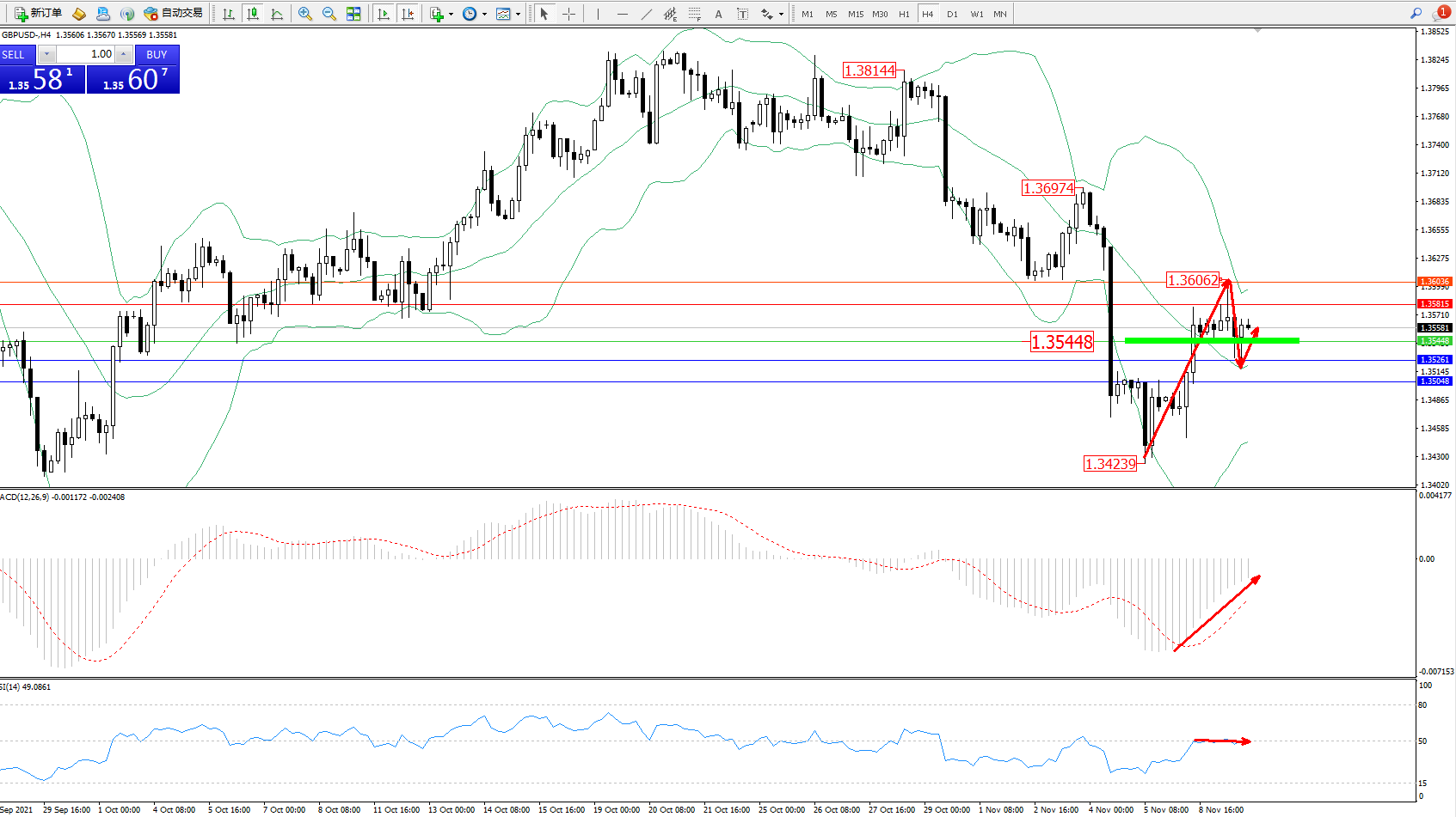 交易策略:1.35448上方看涨,目标1.35815、1.36036