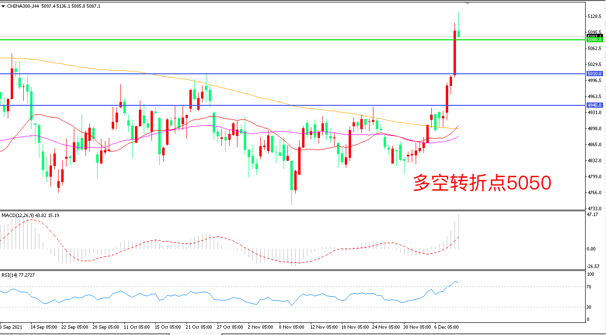 周四(12月9日),国内处于政策的蜜月期,经济回升预期推动A股大幅反弹,沪深300延续强势表现,收报5087点。两市合计成交1.26万亿元,北向资金净买入216.56亿元,史上第三次突破200亿元。本周降准公布后,市场氛围逐渐升温,预期沪深300中期走势将持续向好。