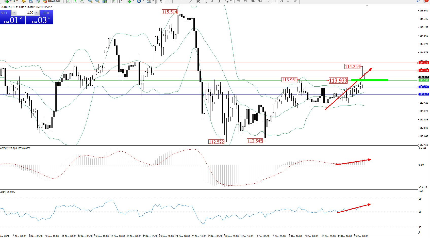 交易策略:113.933上方看涨,目标114.155、114.336