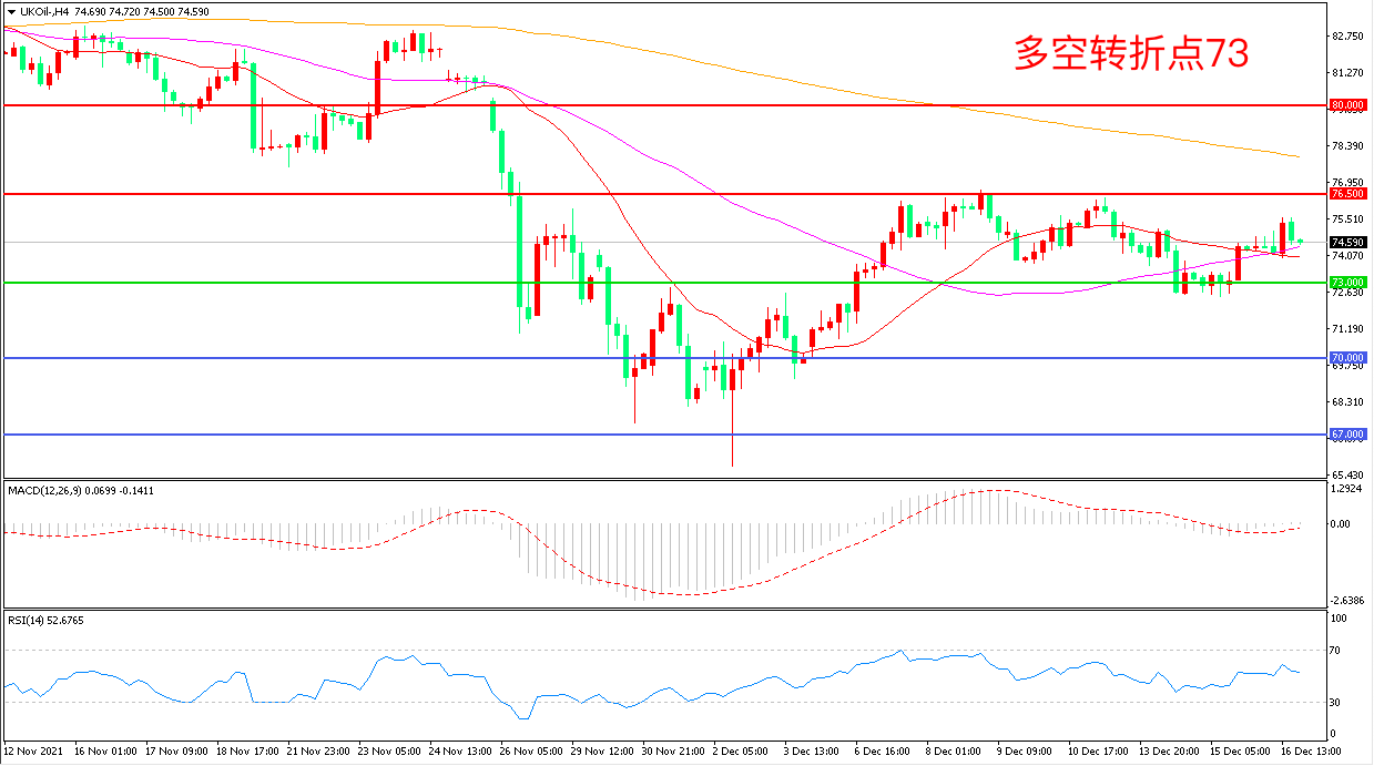 交易策略:在73.00之上看涨,目标76.50 80.00