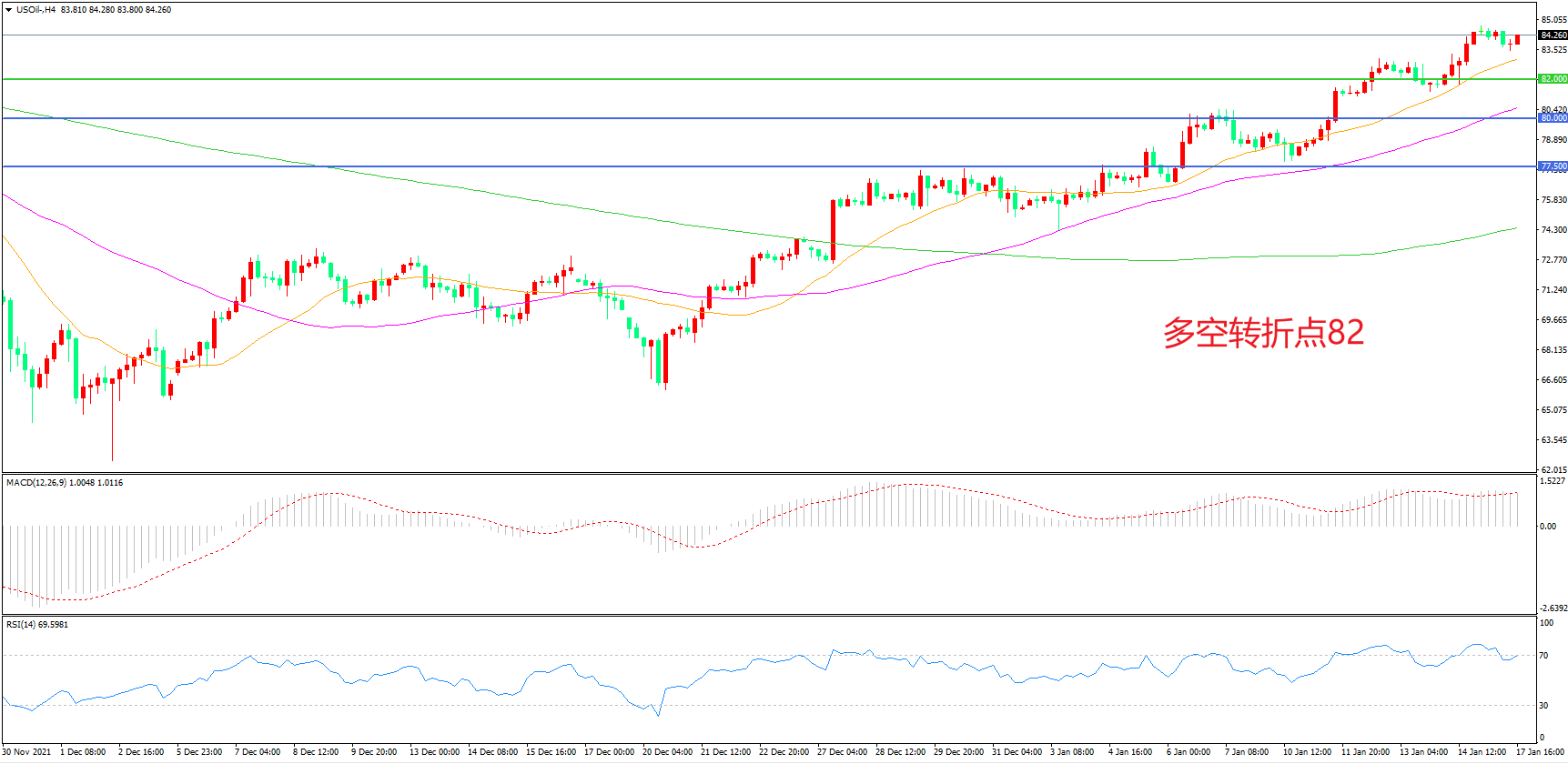 多空转折点:82.00