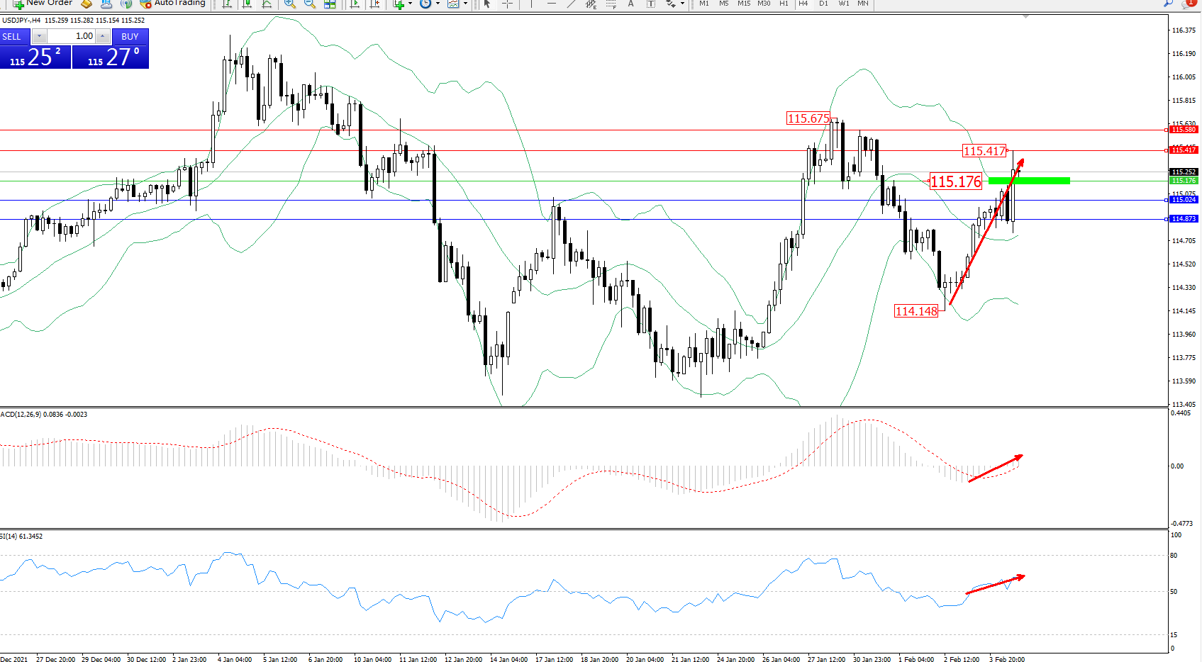 交易策略:115.176上方看涨,目标115.417、115.580