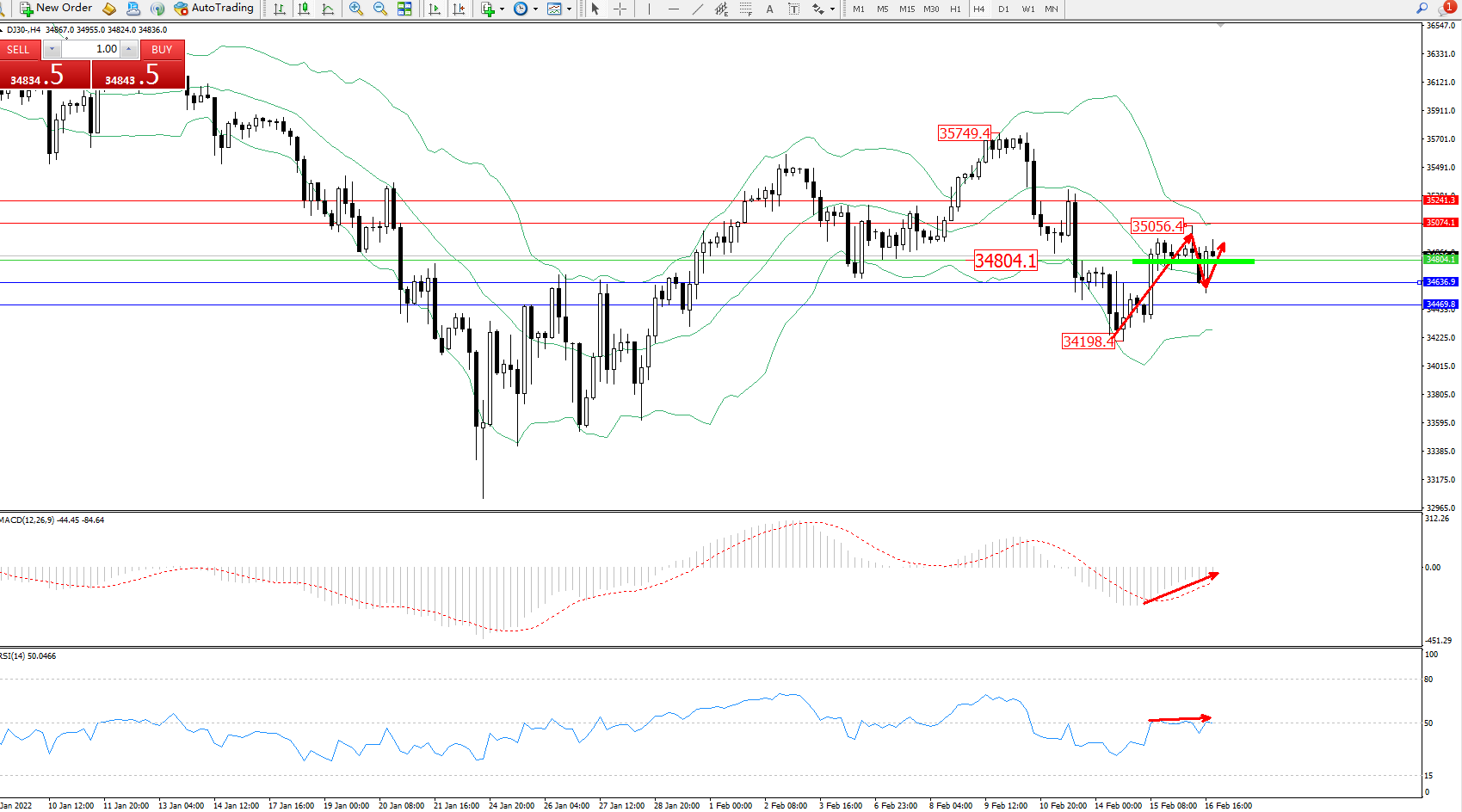 交易策略:34804上方看涨,目标35074、35241