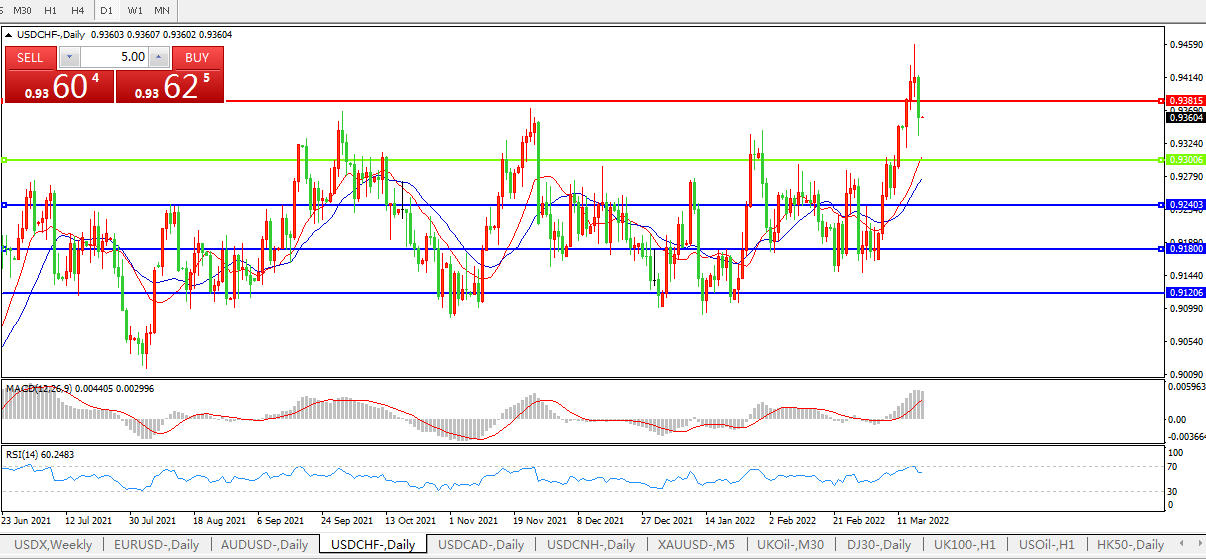 投资者密切关注俄乌合谈,美元兑瑞郎冲高回落