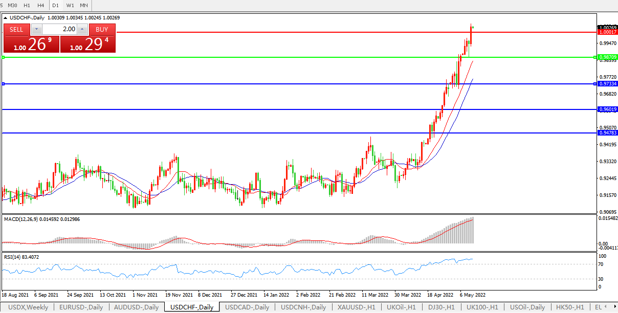 遏制通胀料施压经济,美元兑瑞郎继续冲高