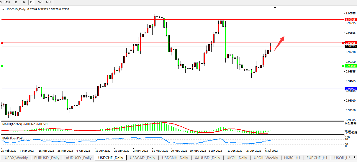 交易策略:0.9600上方看涨,目标0.9800,1.0000