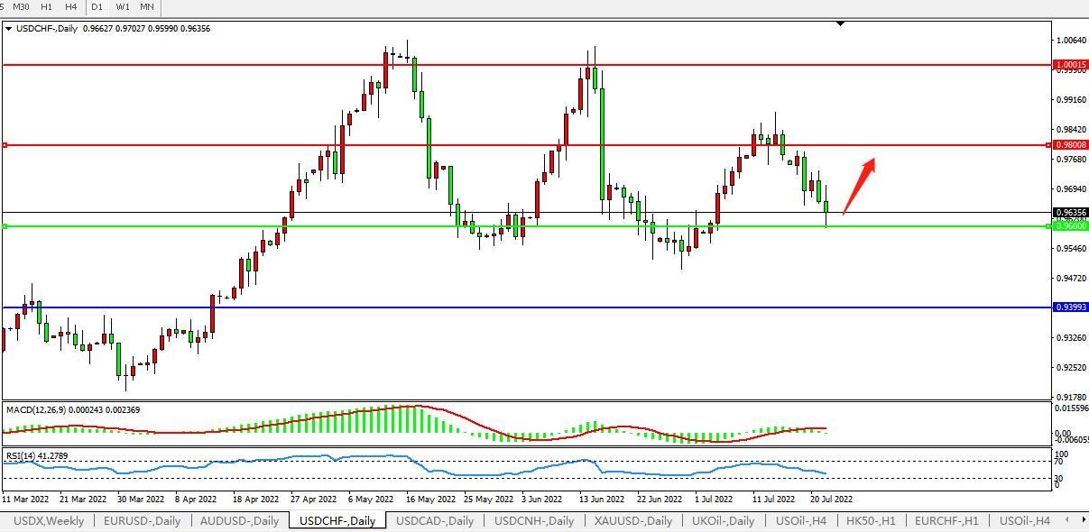 USDCHF:测试0.9600附近支撑