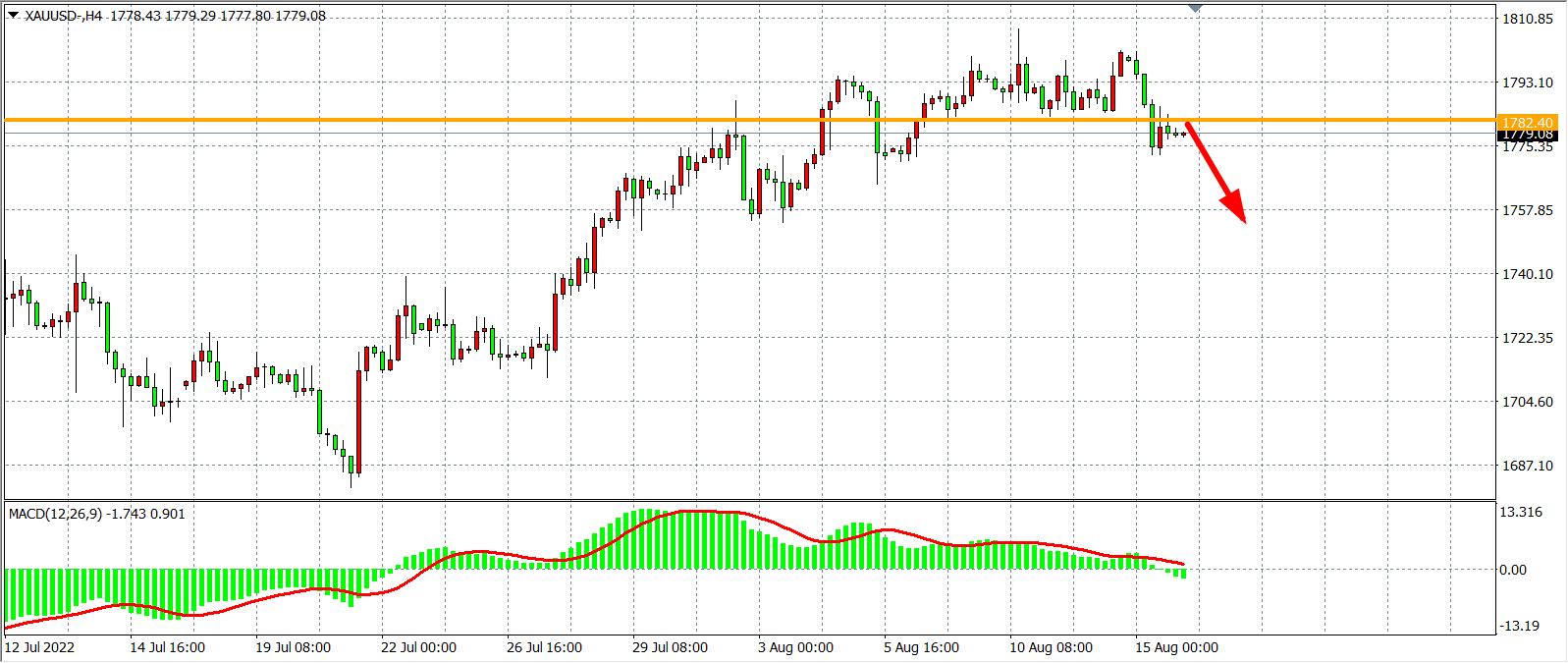 交易策略:在1782.00之下看跌,目标1770.00 1755.00