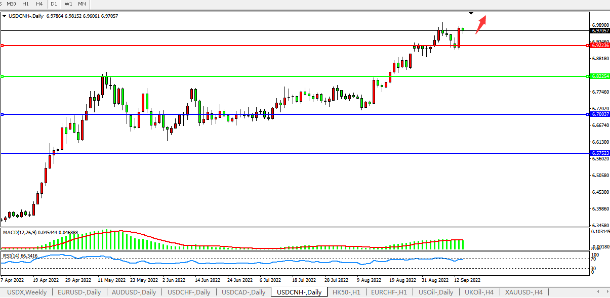 美元人民币USDCNH 日线图: