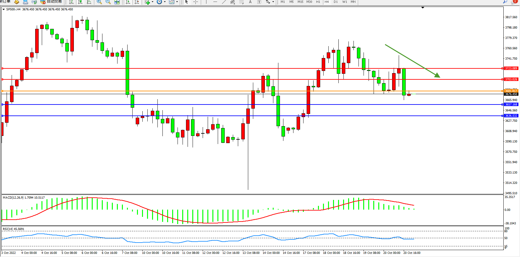 标普SP500——4小时K线图显示: