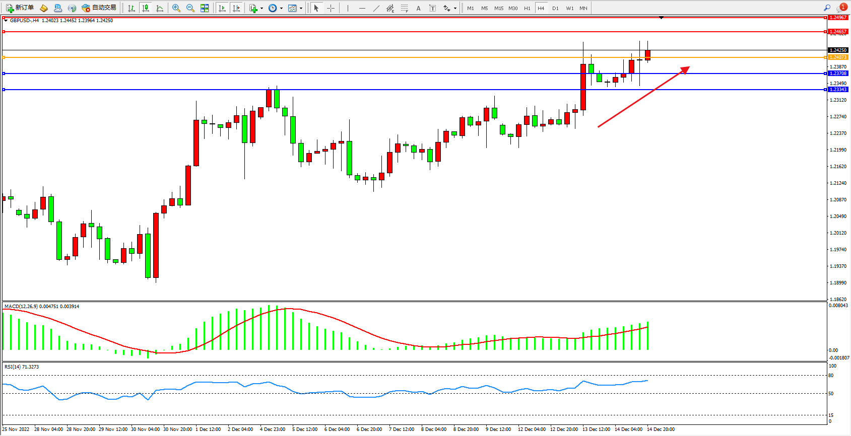 英镑美元GBPUSD ——4小时K线图显示: