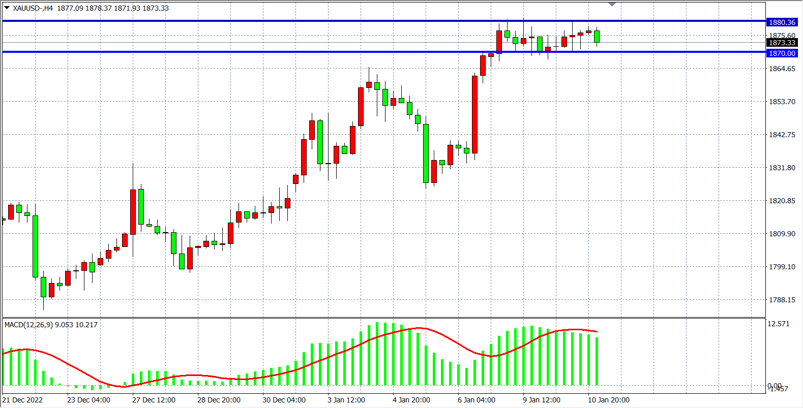 交易策略:在1870.00 之上看涨,目标1880.00         1900.00