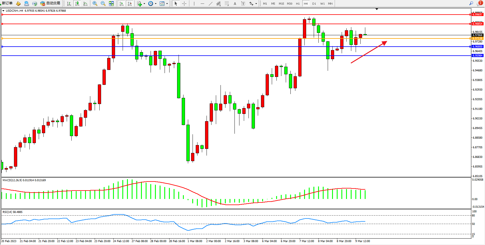 备选策略:6.97538下方看跌,目标6.96800  6.95984
