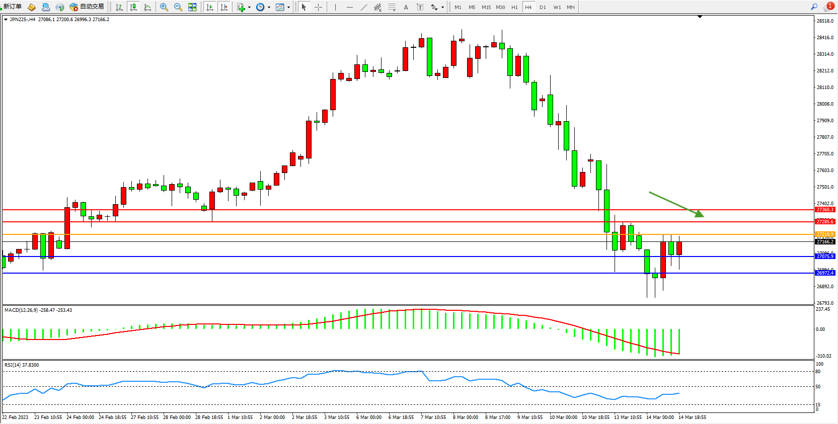 交易策略:27210下方看跌,目标27075  26972
