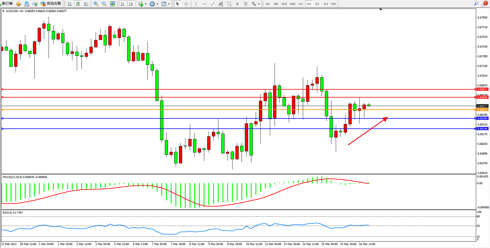 阻力位:0.66698 0.66812