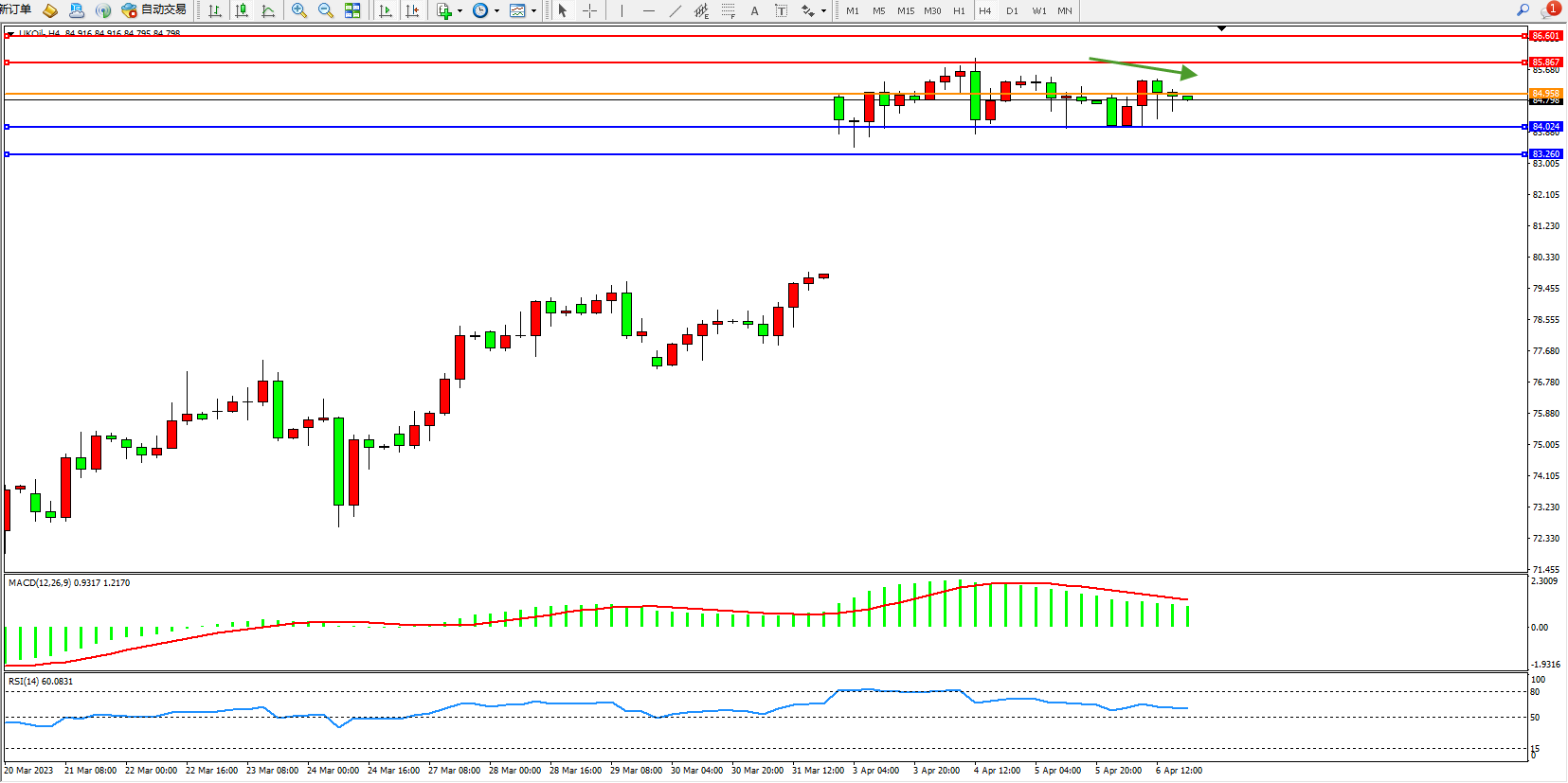 布油UKOil——4小时K线图显示:
