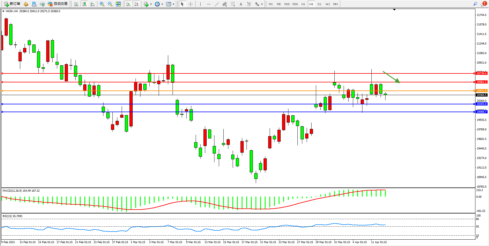 恒指HK50 4小时图