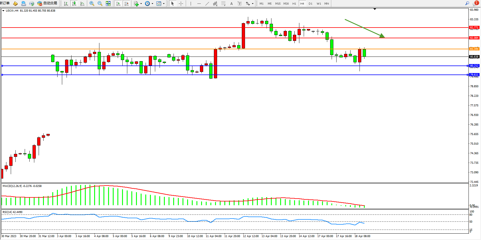 交易策略:81.345下方看跌,目标80.212  79.611