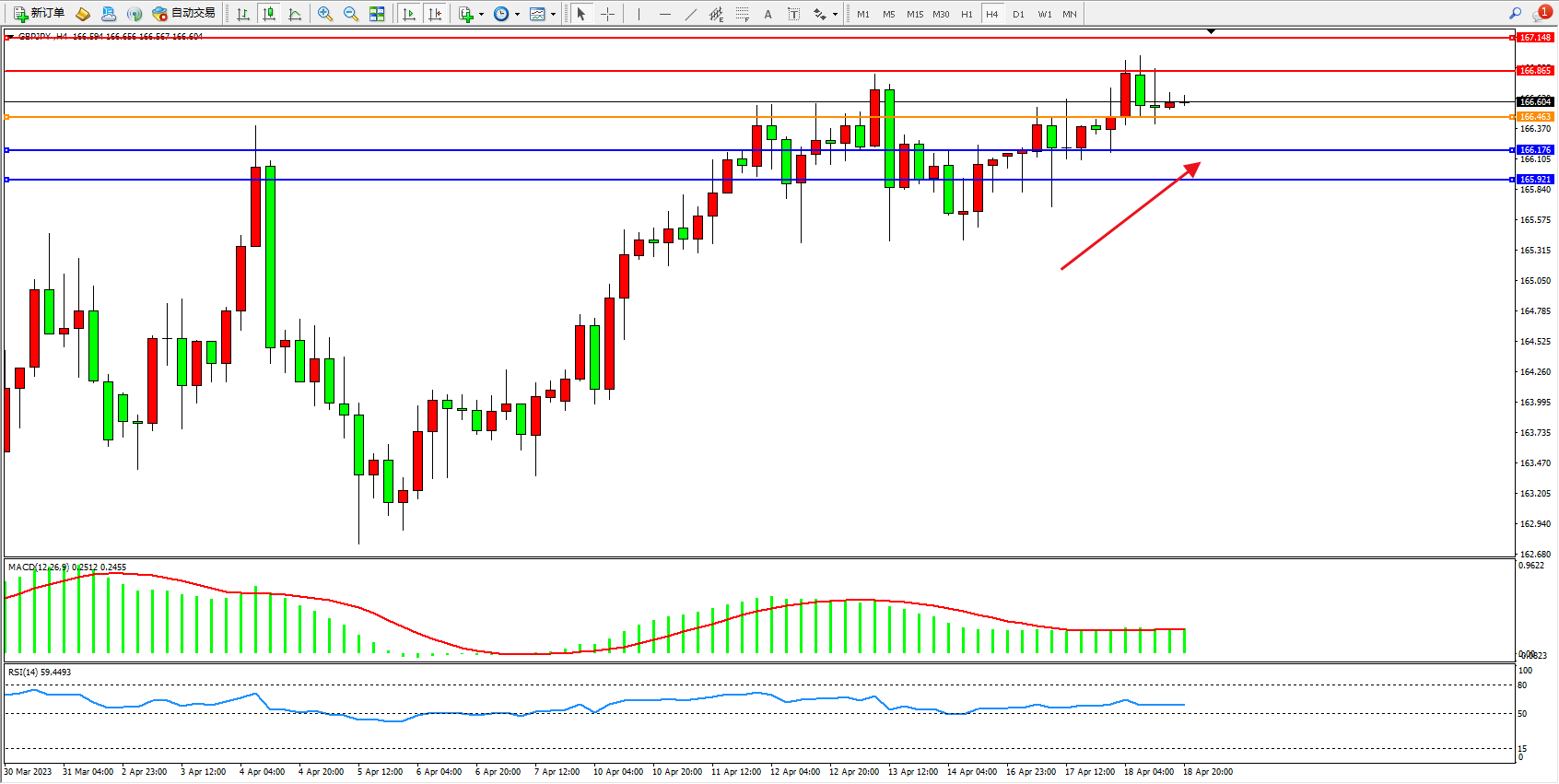 交易策略:166.463上方看涨,目标166.865 167.148