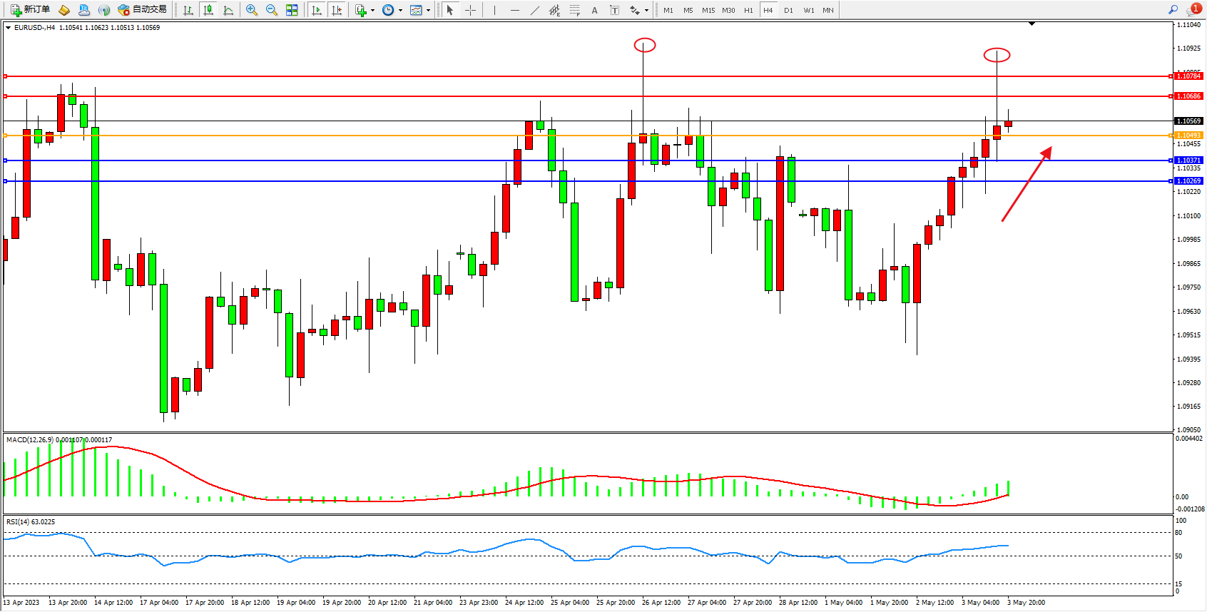 交易策略:1.10493上方看涨,目标1.10686  1.10784