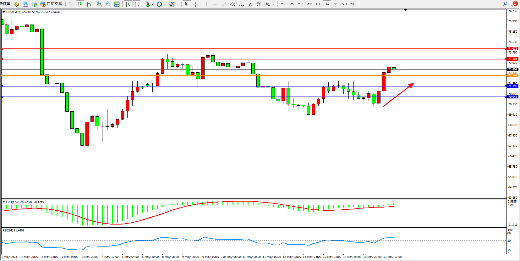 交易策略:72.149上方看涨,目标73.301 74.032