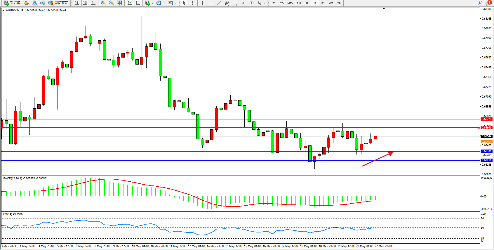 阻力位:0.66661 0.66778