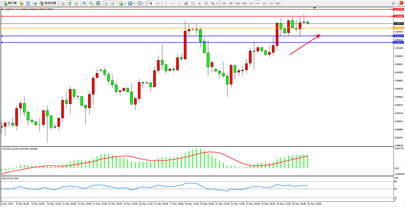 交易策略:0.90502上方看涨,目标0.90689  0.90799