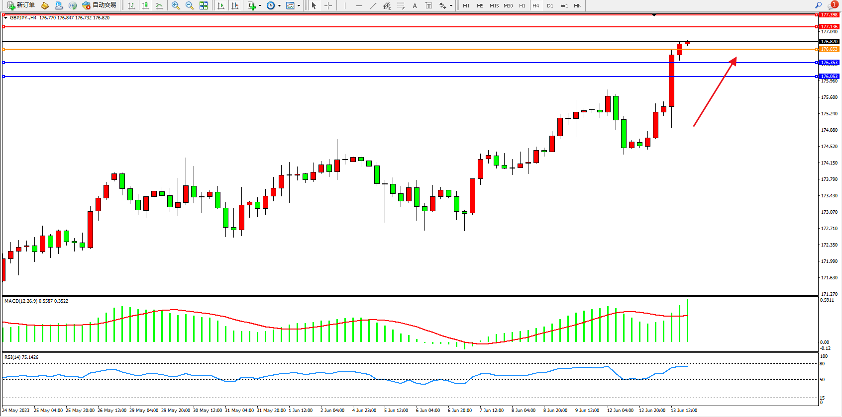 阻力位:177.136  177.398