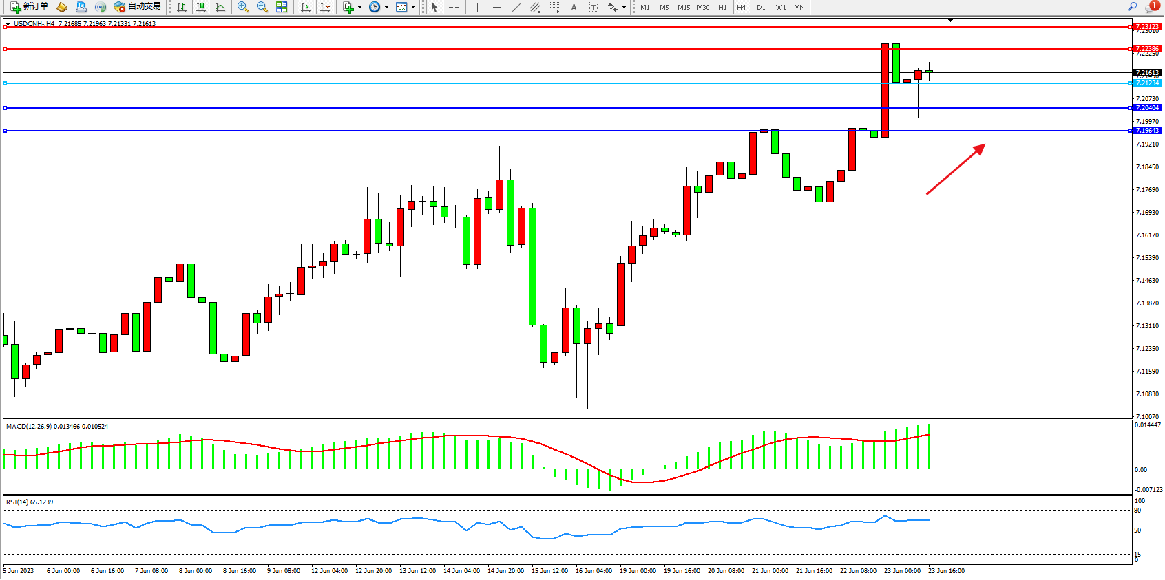 备选策略:7.21234下方看跌,目标7.20404 7.19643