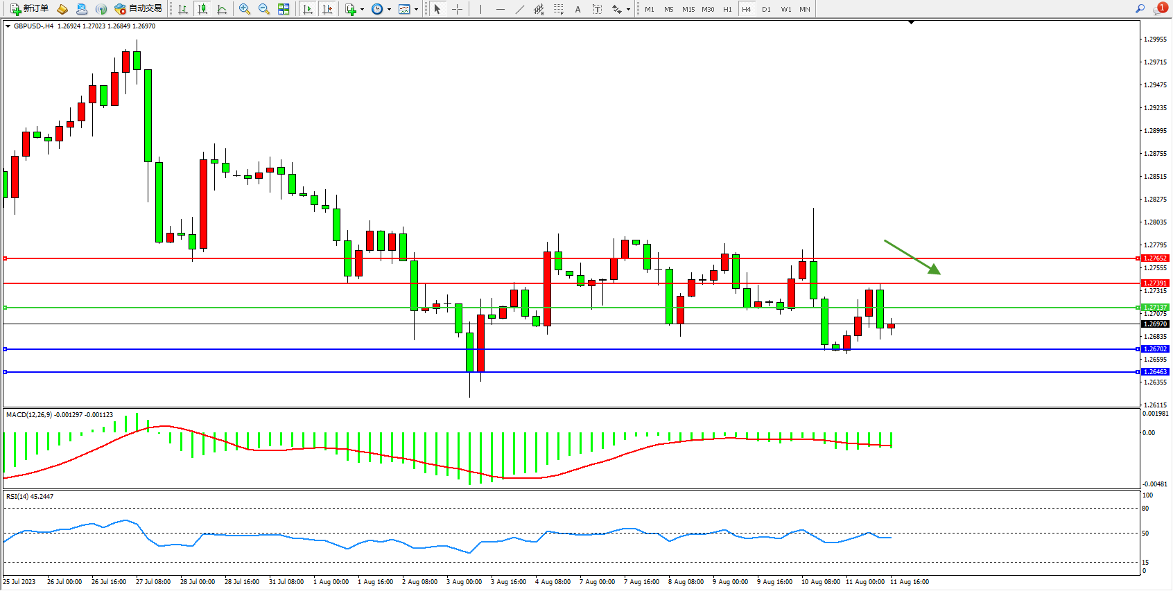 交易策略:1.27137下方看跌,目标1.26702 1.26463