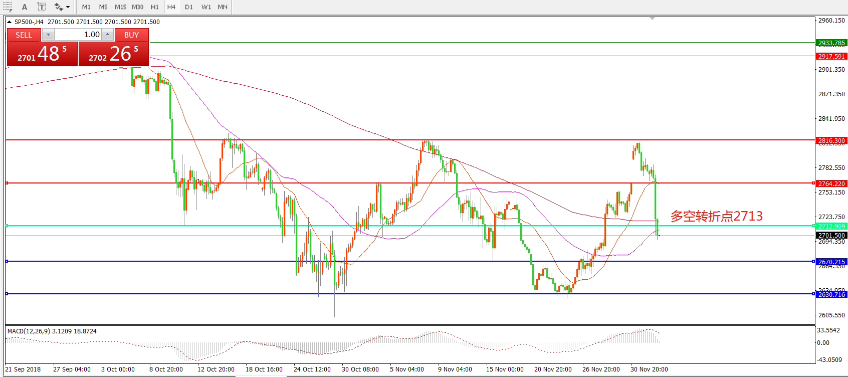 标普500SP500  4小时图: