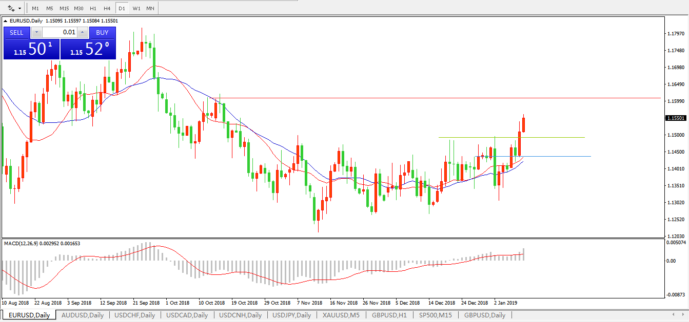 交易策略:在1.1495之上,看涨,目标价位为 1.1595 ,然后为1 .1620。