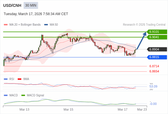 替代方案: 在6.8815以下,期待6.8714和6.8654。
