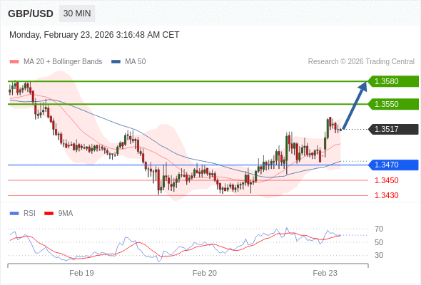在 1.3470 之上,看涨,目标价位为 1.3550 ,然后为 1.3580 。