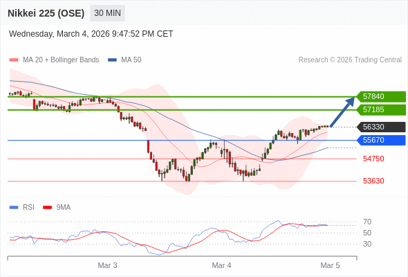 在 55670 之上,看涨,目标价位为 57185 ,然后为 57840 。
