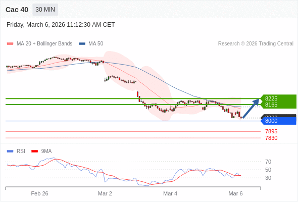 在 8000 之上,看涨,目标价位为 8165 ,然后为 8225 。